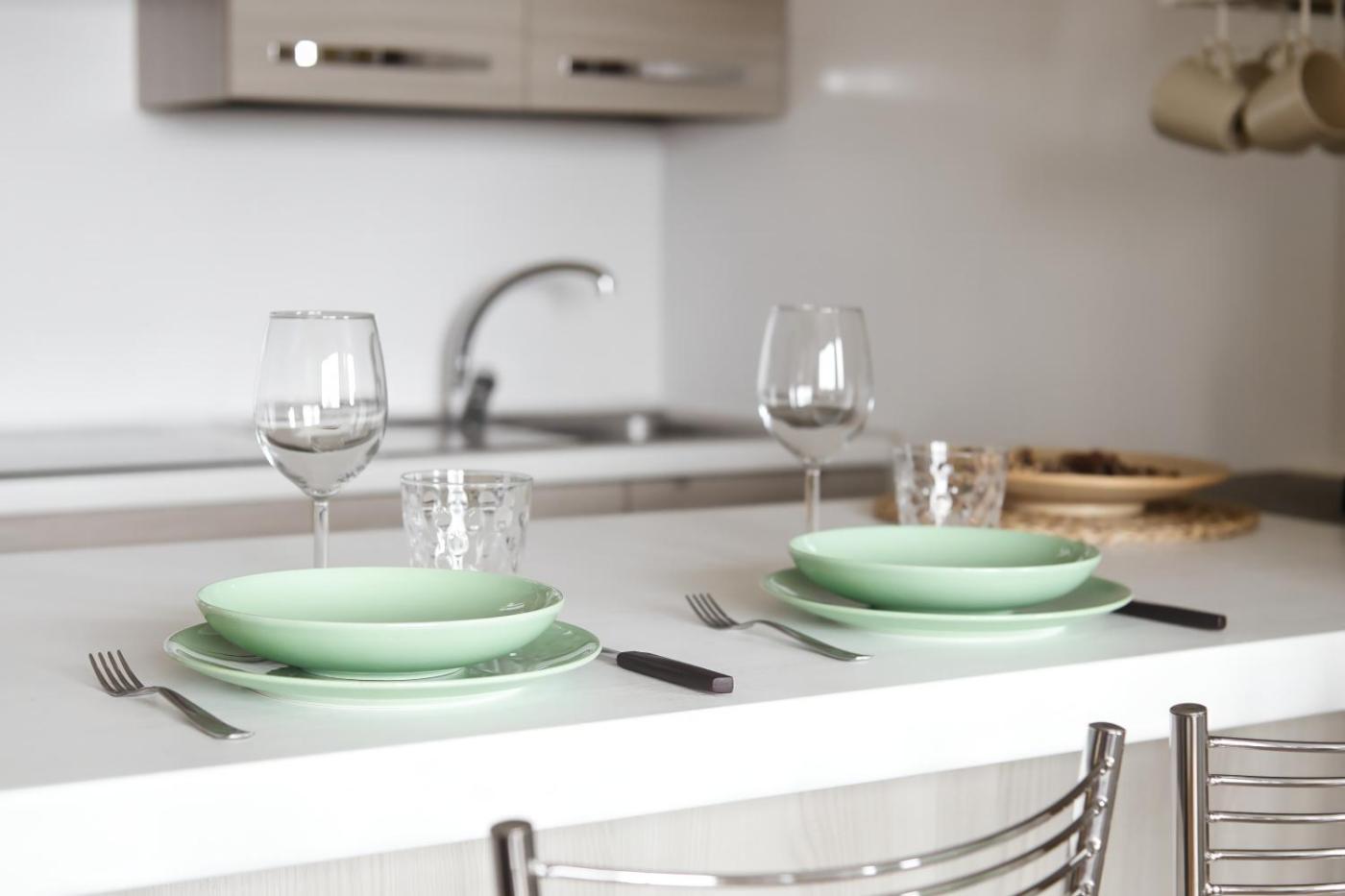 One-Bedroom Apartment. This apartment comes with 1 living room, 1 separate bedroom and 1 bathroom with a shower and free toiletries. Guests can make meals in the kitchen that features a stovetop, an oven, a microwave and a tea and coffee maker. This apartment has air conditioning, a washing machine, flat-screen TV, as well as winechampagne for guests. The unit has 2 beds.