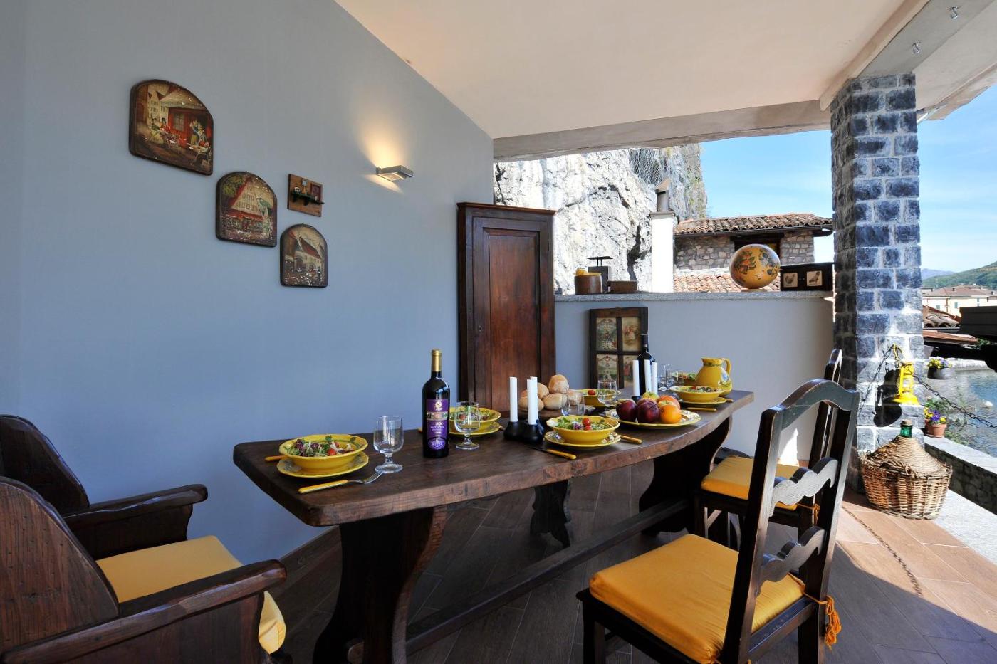 The villa is equipped with 1 bedroom, 1 bathroom, bed linen, towels, a TV with satellite channels, a dining area, a fully equipped kitchenette, and a terrace with lake views. The property has an outdoor dining area.